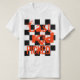 Camisa branca da banda de LKP com verificadores e rotulação vermelha
