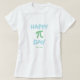 Camisa Feliz Dia do Pi. Design simples e alegre em azul claro e verde. Uma linha de texto personalizado na parte inferior pode ser usada para adicionar uma data ou um texto curto. Camisa divertida para um amante da matemática e um geek orgulhoso da ciência.
