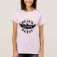 Camisa cor-de-rosa com logotipo na parte dianteira e do slogan na parte traseira sobre.