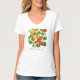 Flores da chagas em alaranjado e no vermelho em um delicado, t-shirt anel-girado da malha do jérsei para o artista de jardinagem Carolyn McFann dos hobbyists por natureza do estúdio de ronrom de dois gatos.