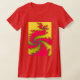 Esta camisa apresenta um padrão fractal que parece um Dragão Chinês. O dragão é um tom vivo e brilhante de vermelho e está cercado por um fundo amarelo feroz.