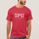 Camisa do designer gráfico ou geek de computador com GPU em fonte colegial e a definição da sigla - Unidade de processamento gráfico. Claro, é uma parte do computador, mas se você está interessado em gráficos, pode ser você também.