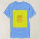 A t-shirt chegou dentro do tempo anunciado e apresentou-se com todas as características que estavam anunciadas. Boa qualidade do tecido e bons acabamentos. O tamanho veio conforme o pedido. Perfeita! Fiz apenas uma pequena personalização no texto, e o mesmo assim veio, bem como todo o restante texto, devidamente impresso e exactamente como estava anunciado na página. Sem falhas!