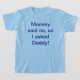 crianças camisa azul clara com texto de como uma criança olha para seus pais.