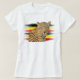 A combinação do motivo-leopardo com a bandeira queniana numa camiseta serve como uma celebração da rica biodiversidade e identidade cultural do Quénia. Vestir tal camiseta permite que os indivíduos expressem seu amor pelo país e sua vida selvagem, fazer que seja uma lembrança ideal para turistas e um artigo de depoimento para os moradores. Promove um sentimento de pertença e orgulho, vestido casualmente ou durante eventos especiais. Esta peça representa não apenas uma escolha de moda, mas também uma narrativa do patrimônio do Quênia, esforços de conservação e a beleza de suas paisagens naturais.