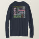Promova a consciência TRAUMÁTICO (TBI) da LESÃO CEREBRAL com esta camisa longa significativa da luva que caracteriza uma fita verde na parte dianteira com uma colagem inspirada das palavras -- incluir o amor, sobrevive, espera e cura-se -- na parte traseira.