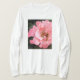 Este t-shirt longo da luva caracteriza um rosa bonito do rosa.