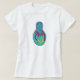 Esta camisa apresenta um impressão gráfico colorido matryoshka russo ninho boneco em azul, rosa e verde. Faz uma declaração de moda ousada e contemporânea.