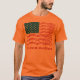 A bandeira americana com 50 estrelas e listras feitas de bacon. As palavras "nação bacon" também estão em cores básicas com contorno de gordura branca.