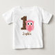 Aqui está uma camisa fofa para sua garotinha vestir no seu primeiro aniversário. Ele tem o número um que é marrom com um padrão paisley rosa. Há uma coruja rosa bonita ao lado da coruja. Abaixo está o nome da criança de aniversário que você pode digitar para que a camisa seja personalizada apenas para a aniversariante. Se você também clicar no retângulo de personalização laranja, poderá alterar a fonte, a cor e o tamanho.