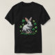 Coelho branco bonito rodeado por 4 cobertores folheados