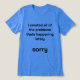 A t-shirt chegou dentro do tempo anunciado e apresentou-se com todas as características que estavam anunciadas. Boa qualidade do tecido e bons acabamentos. O tamanho veio conforme o pedido. Perfeita! Fiz apenas uma pequena personalização no texto, e o mesmo assim veio, bem como todo o restante texto, devidamente impresso e exactamente como estava anunciado na página. Sem falhas!