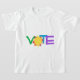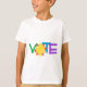 Vamos nessa! GOTV vocês! Camisa com cores vibrantes apresentando o trabalho de um artista jovem, para "eleitores em treinamento" ajudarem os eleitores adultos a sair para votar!