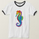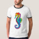 Articulação artificial, brilhante, arco-íris, cavalo de mar poligonal sobre fundo branco. Tatuagem brilhante.