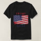 Esta camiseta masculina apresenta uma grande e vibrante bandeira americana gravada na frente, suas estrelas e listras vivas e ousadas, simbolizando o espírito de liberdade e orgulho nacional. A bandeira é representada por um proeminente "TRUMP 2024" em letras vermelhas e azuis marcantes, colocadas contra o pano de fundo da bandeira para fazer uma declaração poderosa.