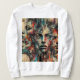 Este trabalho de arte é um abstrato-retrato cativante e provocador do pensamento. Ele apresenta várias faces femininas sobrepostas e interligadas, criando uma sensação de profundidade e complexidade. As cores são vibrantes e contrastantes, com braçadas de vermelho, azul, amarelo e preto. O efeito geral é dinâmico e expressivo, evocando um sentimento de emoção e introspecção