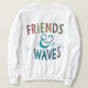 Esta design de camiseta captura o espírito de amizade e amor pelo oceano. O texto "Amigos & Ondas" é exibido em uma fonte divertida e multicolorida, com o símbolo "&" nitidamente transformado em uma onda ou incorporando uma pequena ilustração de onda. As cores vibrantes evocam uma sensação de diversão no verão e infinitas aventuras compartilhadas com amigos.