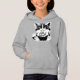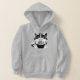 Um gato de desenho animado com olhos grandes e brilhantes está balançando uma pizza enfeitada de peixe e outros sapos. O uso lúdico de cores e recursos exagerados adiciona um toque caprichoso.
