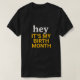 Saia e comemore VOCÊ com esta ousada "Olá, é o meu mês de nascimento"! Perfeito para fazer todos os dias do seu mês de aniversário especial. Com um fundo preto impressionante e textos brancos e amarelos divertidos, esta camisa é a sua maneira divertida de deixar o mundo saber que é a sua hora de brilhar! Excelente para festas, excursões casuais, ou só ter seu momento.