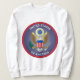 Design muito agradável mostrando o Selo Excelente dos Estados Unidos dentro de uma forma circular feita das cores nacionais.