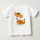 Esta imagem adorável apresenta um filhote de tigre de desenho animado. Tem olhos grandes, redondos, um sorriso largo, e listras distintas laranja e preto. O filhote de tigre está sentado sobre as pernas traseiras com as patas dianteiras encaixadas, dando-lhe uma aparência divertida e fofinho