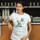 Esta design de camiseta de futuro da "momy-to-be" chá de fraldas apresenta um adorável ursinho de pelúcia a aquarela com balões em forma cardíaca e tipografia azul e negra personalizável "podemos esperar" tipografia personalizável.