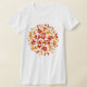 Autumn Midnight, mostra um padrão vibrante de folhas do outono em um fundo preto. As folhas são uma mistura de tons vermelhos, laranja, amarelo e dourados, representando uma variedade de espécies como carvalho, carvalho e castanheiro. "o contraste entre as cores vívidas das folhas e o fundo escuro cria um efeito marcante e dramático, enfatizando os tons quentes e o detalhe intrincado da folhagem. folhas menores, bolotas e galhos são espalhados ao longo, acrescentando profundidade e textura ao padrão. A design tem um sentimento enérgico e festivo de uma noite viva de outono.