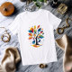 Expresse seu amor pela natureza e arte com esta camiseta colorida de abstrato árvore. Com uma vibrante design com folhas fluentes e estética moderna, esta árvore artística é perfeita para mulheres que apreciam moda criativa. Uma escolha na moda para o visto casual, amantes da natureza, e aqueles que buscam um roupa gráfico único com um toque elegante, mas contemporâneo.