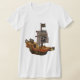 Piratas percorrendo o mar causando estragos. Bem, pelo menos é isso que Hollywood nos faria acreditar. De qualquer forma, esta é uma design incrível de um navio pirata. Este navio pirata tem uma velejação com um crânio e ossos cruzados sobre ele e no topo do mastro está uma bandeira com um crânio e ossos cruzados. Esta design de nave pirata parece excelente nesta camiseta feminina. Perfeito para si mesmo ou como presente