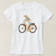 Uma cena balnear retrata um cachorro andando de bicicleta contra um fundo comum, com cores predominantemente em castanho e azul. A composição combina humor e simplicidade, capturando um momento imaginativo de fantasia.