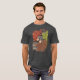A fotografia de folhas coloridas do outono rodeia dois pequenos corações. As folhas são feitas de um material de juta e dão textura adicionada ao trabalho de arte. A foto original é mascarada para desaparecer na cor da t-shirt.
