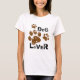 Gráfico colorido de cachorro com pintura colorida com estampas de pata em várias camisas coloridas