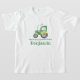 Um divertimento personalizou a camisa que caracteriza um trator verde e amarelo, com um efeito da aguarela. Edite o nome e adicione uma mensagem no traseiro, perfeito para toda a ocasião ou uma festa de aniversário.