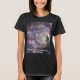 Camisa da série Cute Space Kitten intitulada Worm Hole, com gráficos de um gatinho listrado cinza passando por um buraco de minhoca no espaço. O texto branco diz Indo onde nenhum gatinho foi antes. Personalize o texto para dizer o que você quiser.