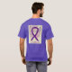 A conscientização do Leiomiosarcoma (LMS) usa uma fita roxa para sua consciência de causa. A arte da camisa apresenta uma pintura de anjo de fita de reconhecimento roxo. A mensagem de t-shirt do anjo de consciência anota "Sensibilização Leiomyosarcoma". Há uma imagem grande na parte de trás da camisa e uma foto menor na parte de frente da camisa. A roupa de anjo de consciência roxo pode ser personalizada com mensagens personalizadas para fazer roupas de evento para a arrecadação de fundos, camisas de caminhada do grupo, presentes de camisetas de conscientização ou outras ocasiões de eventos de causas especiais para a mercadoria para ajudar a aumentar a conscientização da causa em público para a ajuda da sociedade em criar ajuda e causar mudanças.