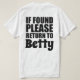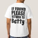 Esta design é destinada a ser personalizada com o nome do seu melhor amigo, companheiro, cônjuge ou parceiro. É perfeitamente compatível com a nossa camisa "Eu sou Betty". Não se perca quando estiver na estrada. Esta design humorística é perfeita para um presente de gag de casamento, uma fantasia de pares ou um presente de boa viagem. É adequado para fundos brancos e de cor clara. Facilmente personalizado mudando "Betty" para qualquer outro nome. gorjeta de design: dimensionar texto personalizado para um pouco mais largo que "RETORNAR A."
