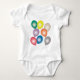 Um padrão de balões coloridos para roupas de bebê. Adicione algum texto para personalizar.