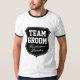 Camisas do Team Grot | Nomes personalizados. Também disponível como camisas de noiva da equipe em rosa e turquesa. Camisas de noiva da equipe divertida para solteiro ou festa de solteira / noite de meninas ou noite de fora de meninos. camisetas de festa de casamento legal para noiva, noiva, padrinhos de casamento, melhor homem, damas de honra, madrinha de casamento, amigos, família, etc. Design para o seu chá de panela. Faça um para a sua comitiva inteira. Nome personalizável e texto do casamento. Crachá emblema de escudo preto e branco.