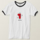 Um grande número vermelho 1 com olhos, braços e pernas em T-shirts de primeiro aniversario Número, canecas, cartões, adesivos, guardas e outros dispositivos de primeiro aniversário.
