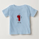 Um grande número vermelho 1 com olhos, braços e pernas em T-shirts de primeiro aniversario Número, canecas, cartões, adesivos, guardas e outros dispositivos de primeiro aniversário.