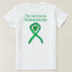 A consciência da depressão usa uma fita verde para sua consciência de causa. A arte da camisa apresenta uma pintura de arte cardíaca com faixa de consciência verde. A mensagem de conscientização da t-shirt anota "Depression Awarness" (Sensibilização para a Depressão). Há uma imagem grande na parte de trás da camisa e uma foto menor na parte de frente da camisa. A roupa da banda verde do anjo de consciência pode ser personalizada com mensagens personalizadas para fazer roupas de evento de excelente para camisas de arrecadação de fundos, camisas de passeio de grupo, presentes de camisetas de conscientização ou outras ocasiões de causas especiais para a mercadoria, para ajudar a aumentar a conscientização da causa do tratamento de depressão em público para a ajuda da sociedade em criar ajuda e causar mudanças.