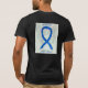 O reconhecimento do Cancer de dois pontos usa uma fita azul para sua consciência de causa. A arte da camisa apresenta uma pintura de anjo de fita azul de reconhecimento. A mensagem de t-shirt do anjo de sensibilização anota "Consciência do Cancer Colon". Há uma imagem grande na parte de trás da camisa e uma foto menor na parte de frente da camisa. A roupa da fita de anjo de consciência azul pode ser personalizada com mensagens personalizadas para fazer roupas de evento de excelente para camisas de arrecadação de fundos, camisas de caminhada da equipe de grupo, presentes de camisetas de conscientização ou outras ocasiões especiais de eventos de causas para mercadorias que ajudem a aumentar a conscientização da causa em público para a ajuda da sociedade em criar ajuda e causar mudanças.