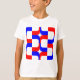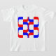 Um design geométrico em negrito, constituído por formas de ângulo curvo, dispostas em direções alternadas com cores alternadas.