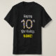 Esta divertida camisa de celebração de aniversário inspirada na botânica, design, tem a mensagem "Feliz 10º Aniversário," junto com um nome personalizado. O grande número "10" apresenta vários ícones de flor. Camisas florais e personalizadas como esta podem ser vestidas pelos participantes numa festa de aniversário que está a ser realizada para celebrar o décimo aniversário de alguém. [~Z0000656]