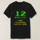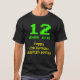 Este design de camisa nerd e bobo mostra a mensagem "12 ANOS DE IDADE!", a mensagem de saudação de aniversário "Feliz 12 de Aniversário", e um nome personalizado. Os dígitos e o texto de idade superior apresentam uma aparência de estilo de gráficos nerdy, verde, pixelizada e de 8 bits inspirada nos jogos de computador de 8 bits e nos videos games antigos. A mensagem de saudação mais baixa apresenta uma aparência geeky, amarela e clássica de inspiração na computação digital. Camisas como essa podem ser vestidas pelos convidados em uma festa de aniversário para comemorar o décimo segundo aniversário de alguém que gosta de videos games clássicos ou de retro-computadores. [~Z0000455]