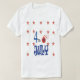 A camiseta projetada para o dia 4 de julho. Pegue uma para ele e uma para ela. Vermelho, branco e azul com estrelas vermelhas. excelente para vestir no Dia da Independência.