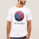 Jogos desportivos inspiraram camiseta para uma festa de 4 de julho com ilustração de uma bola de basquete.