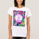Ele é impresso com um design de sequências ( não há sequências reais nesta camiseta ) em cores brilhantes de rosa, vermelho, azul, amarelo e verde.