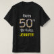 Esta design de camisa de festa de aniversário inspirada na botânica apresenta a mensagem "Feliz 50º Aniversário," junto com um nome personalizado. O grande número "50" apresenta vários ícones de flores. Camisas florais e personalizadas como esta podem ser vestidas pelos participantes de uma festa realizada em comemoração do quinquagésimo aniversário de alguém. [~Z0000656]