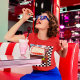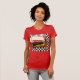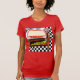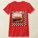 Women’s red Bella Canvas fine jersey t-shirt with an image of a 50s retro diner sign, red diner clock, and a female server with a tray of food on a black and white checkerboard. See the entire Nifty 50s Apparel collection in the SPECIAL TOUCHES | Party Favors section.